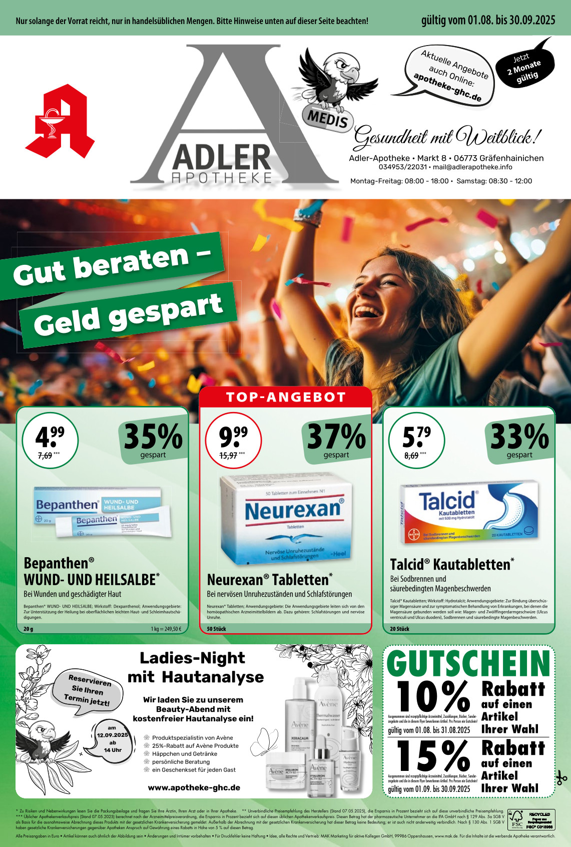 Am Freitag, den 12.09.2025, ab 14:00 Uhr laden wir Sie herzlich zu unserer exklusiven Ladies-Night in unserer Adler-Apotheke ein.